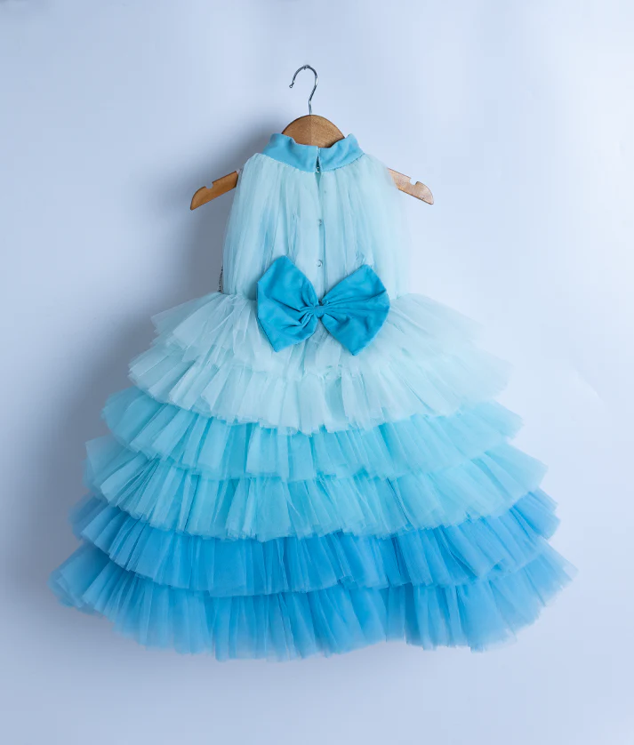 Blue Shade Mermaid Theme Birthday Frock For Baby Girl [Ready To Ship: 2763]