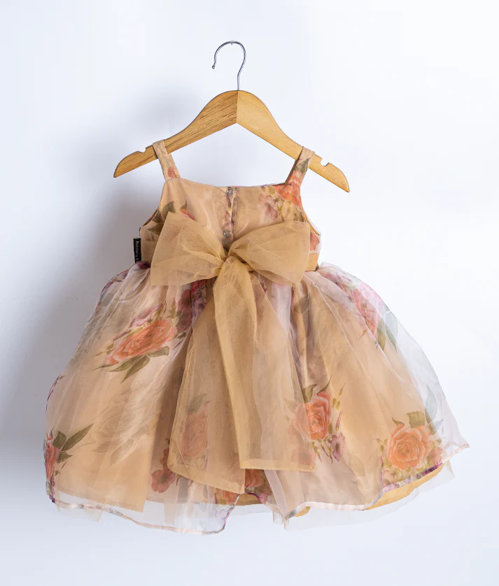 Beige Organza Casual Frock For Baby Girl [Ready to ship: 2286]