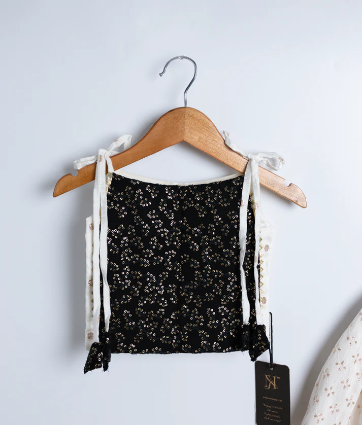 Black Georgette Crop Top With Chanderi Skirt For Baby Girl [Ready to ship: 2812]