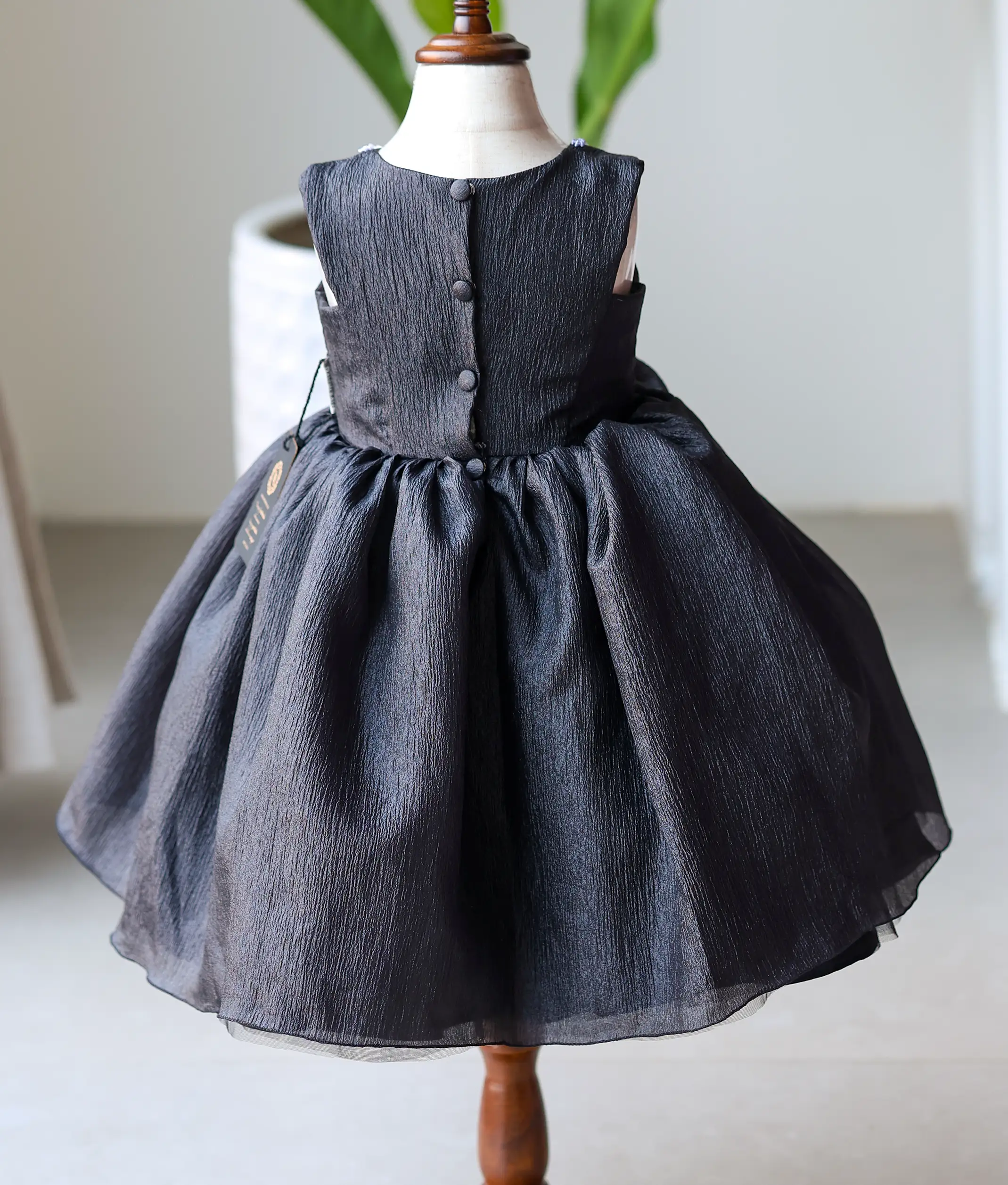 Black Crush Organza Floral Handworked Birthday Frock For Baby Girls [Ready To Ship: 5394]