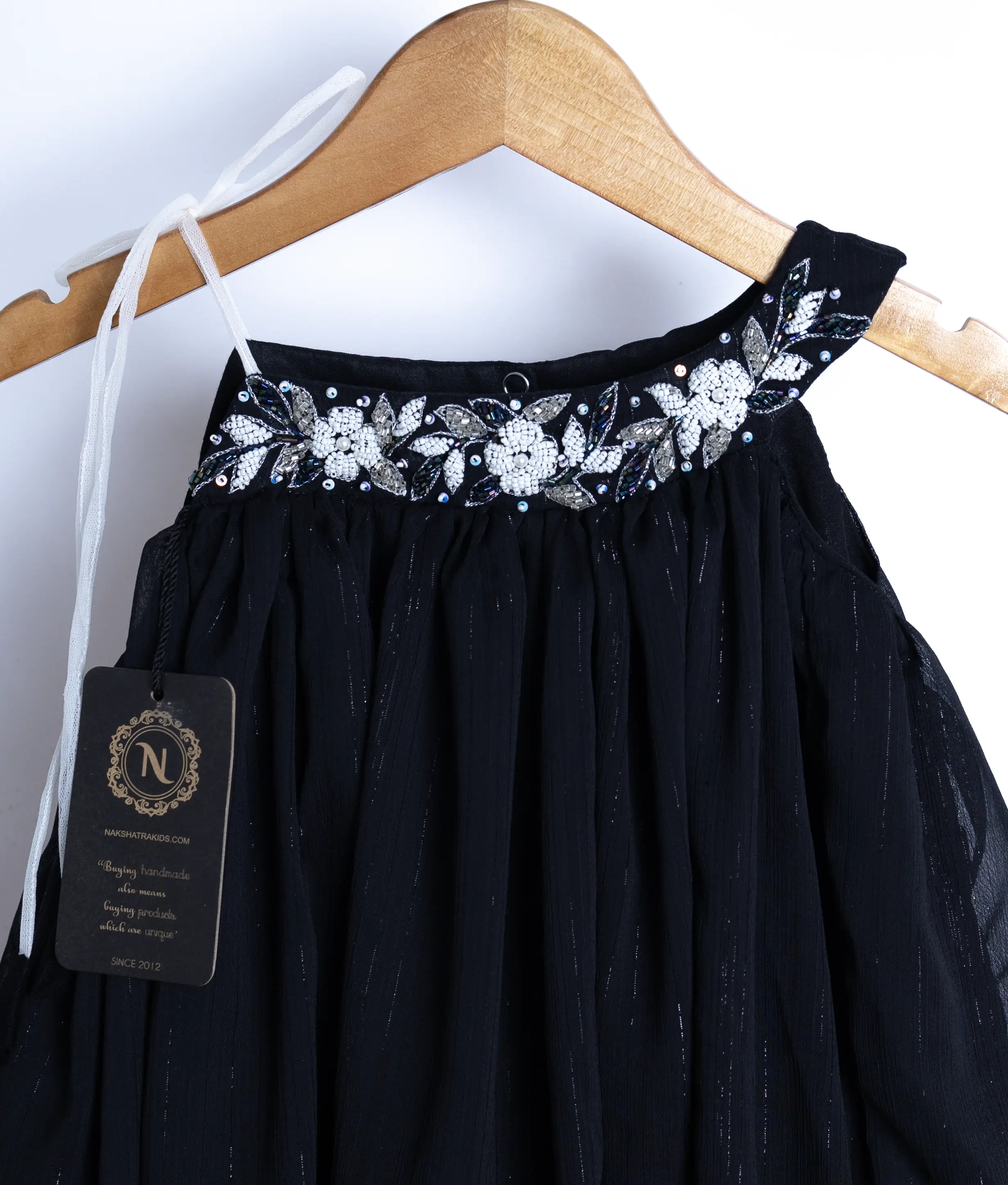 Black Shimmer Georgette Handworked Frock For Baby Girl [Ready To Ship: 2185]