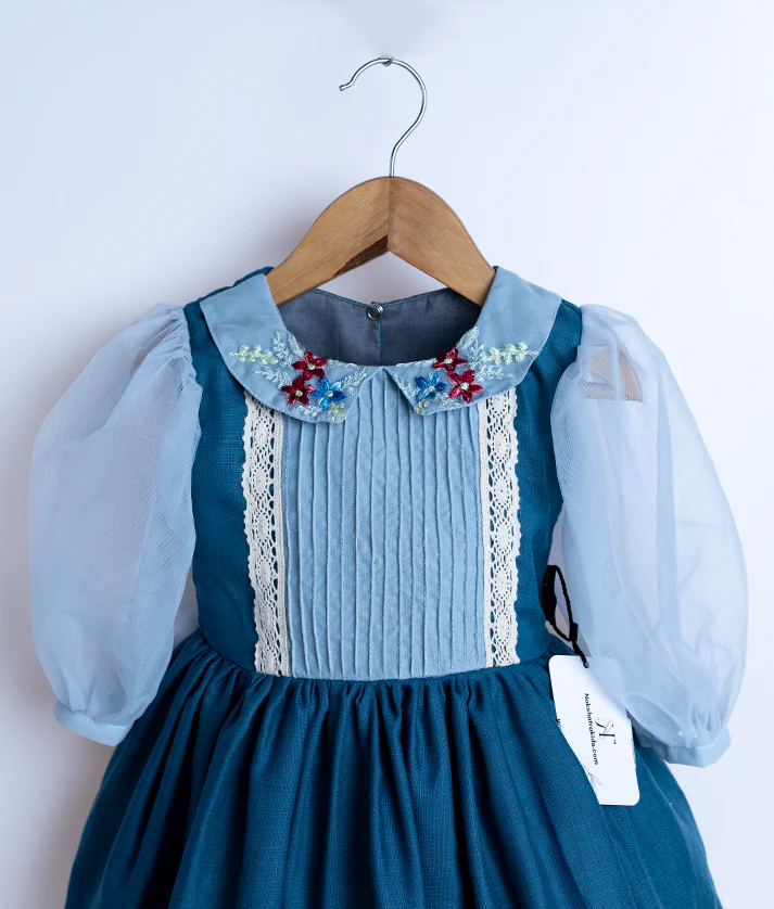Blue floral embroidery cotton frock from our classic collection is crafted to make your little one shine at every occasion. Designed with elegance and premium detailing, it perfectly blends with comfort.