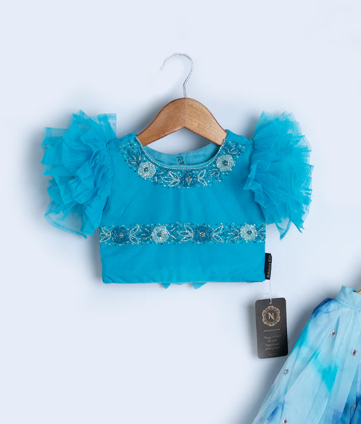 Blue Handworked Crop Top With Full Length Skirt For Baby Girl [Ready to ship :2205]