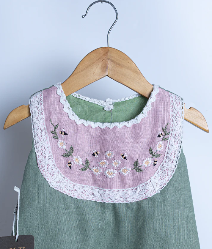 Olive green A-line cotton frock from our classic collection is crafted to make your little one shine at every occasion. Designed with elegance and premium detailing, it perfectly blends with comfort.