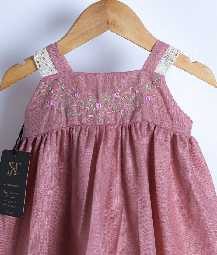 Onion Pink Embroidery Cotton Frock For Baby Girl [Ready to ship: 2615]