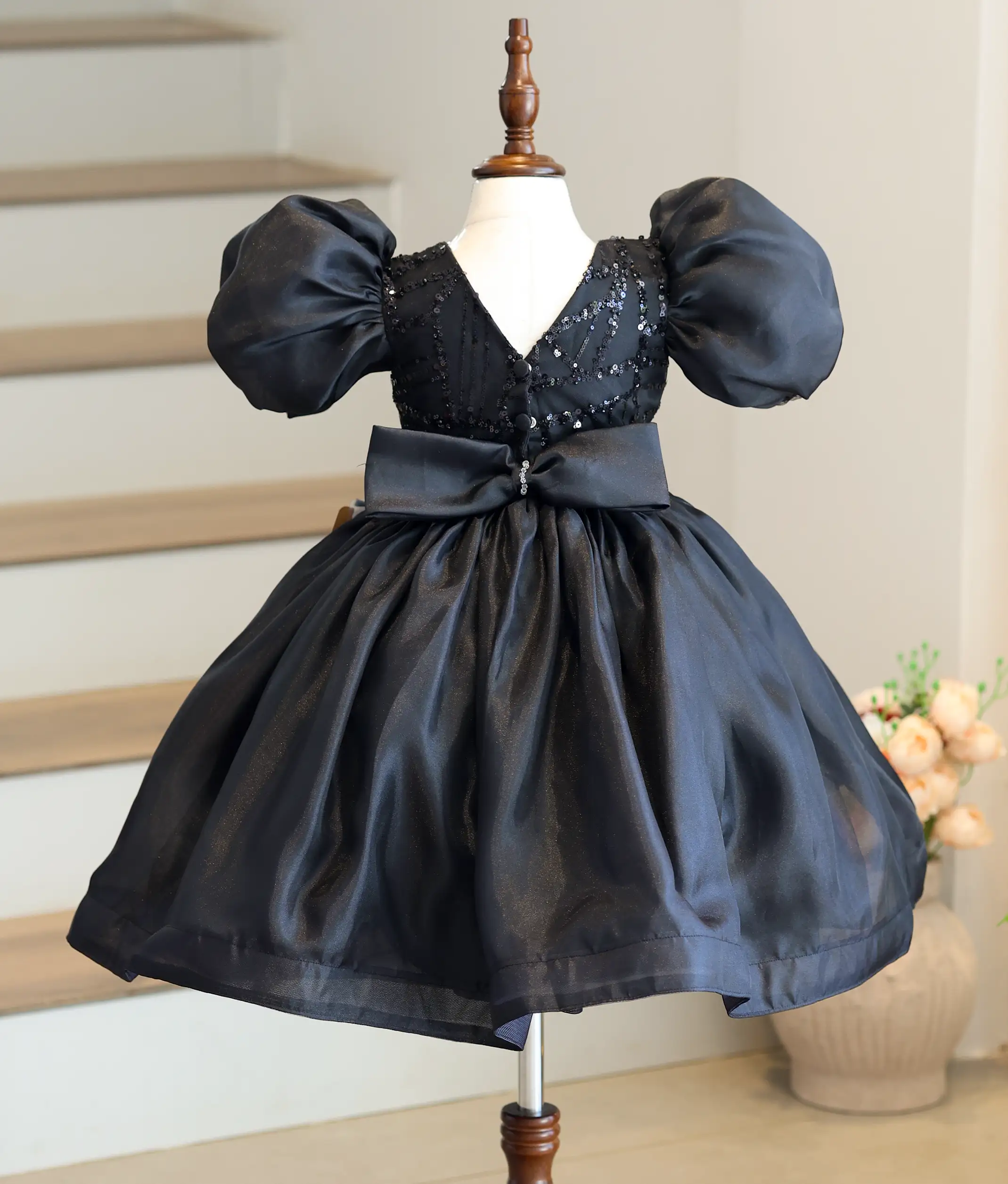 Black Fancy Material Plain Organza Birthday Frock For Baby Girl [Ready To Ship: 2689]