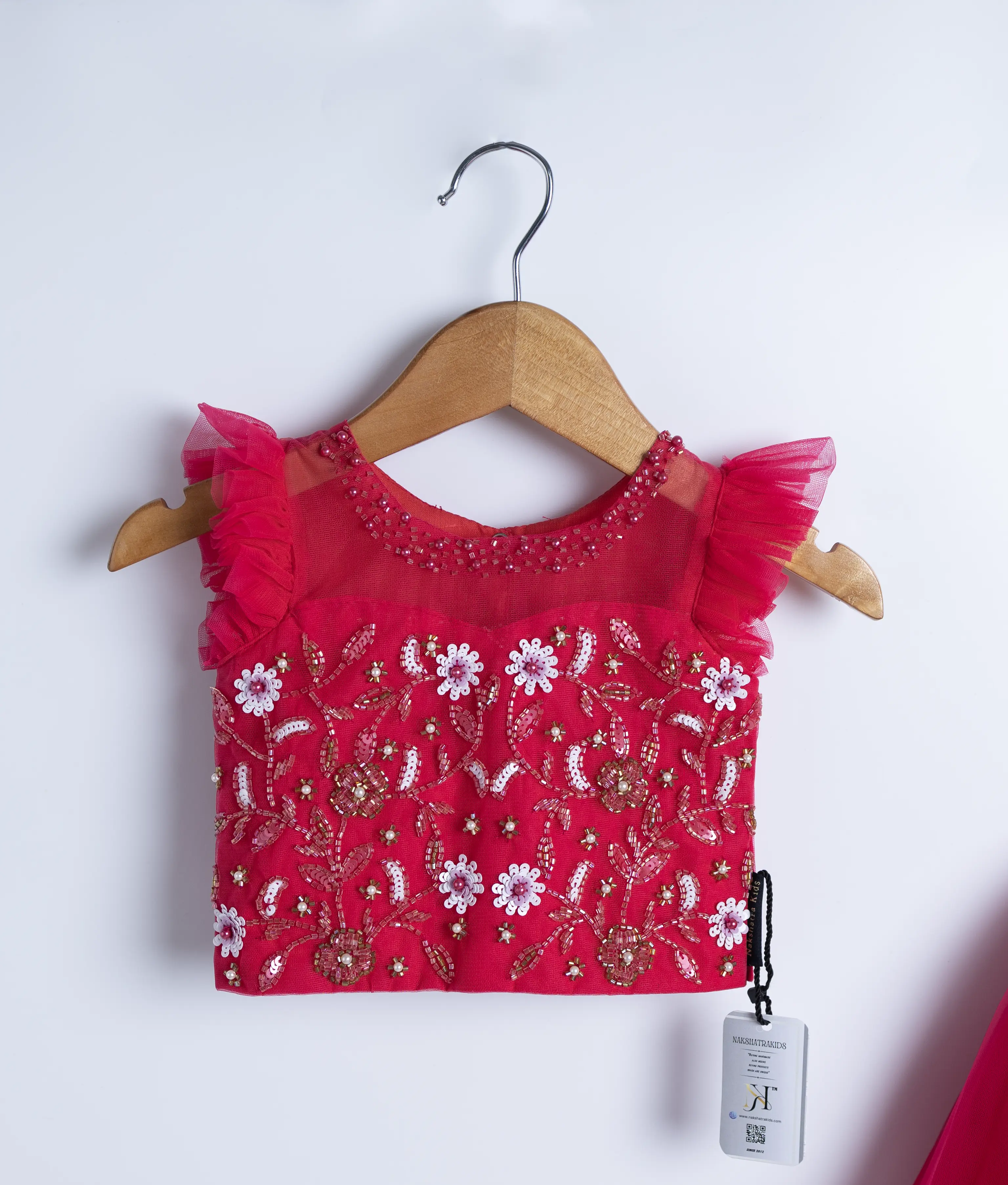 Hot Pink Tulle Net Handworked Crop Top With Skirt For Baby Girl [Ready To Ship: 2150A]