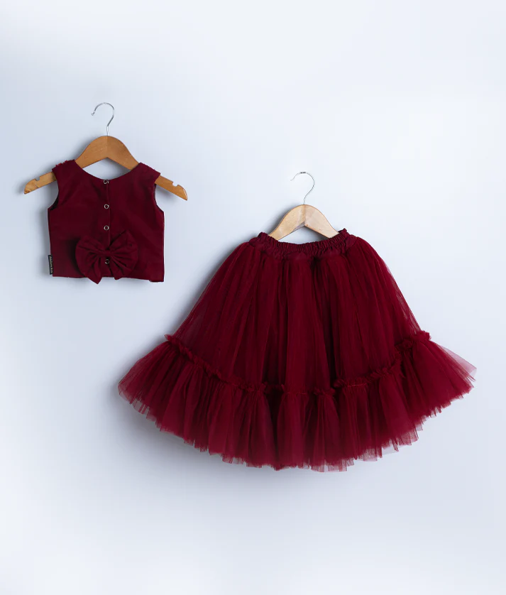 Maroon Tulle Net Handworked Top and Skirt For Baby Girl [Ready to ship: 2246]