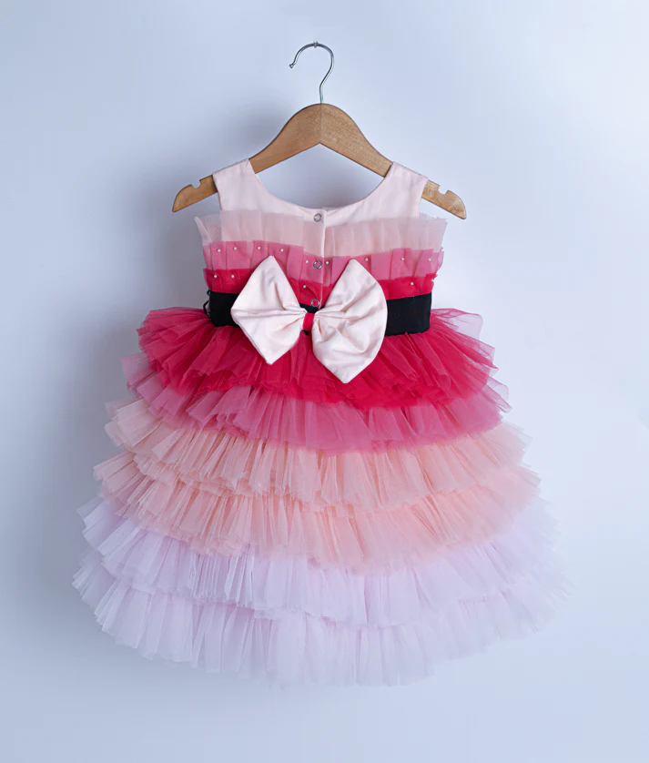 Multi-Colour Tulle Net Handworked Step Birthday Frock[Ready To Ship: 2827]