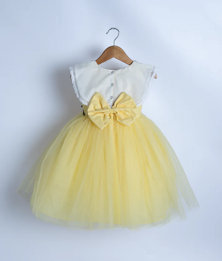 Off-white Handworked Yoke With Yellow Skirt Frock For Baby Girl [Ready to ship: 7739]