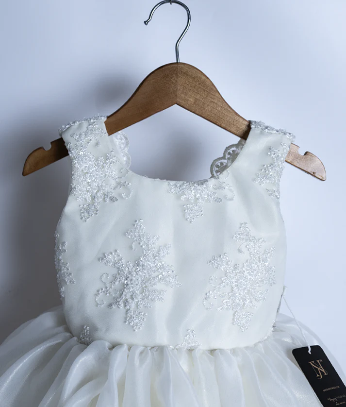 Off-white Work Materal Shimmer Organza Birthday Frock For Baby Girl [Ready To Ship: 2666]