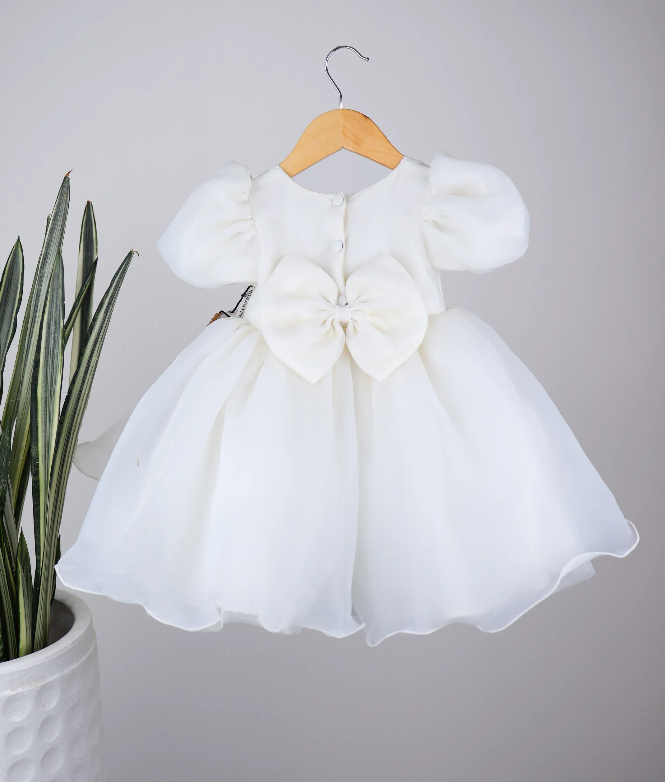 Offwhite Plain Organza Flower Theme Dress For Baby Girl [Ready to Ship : 5268]