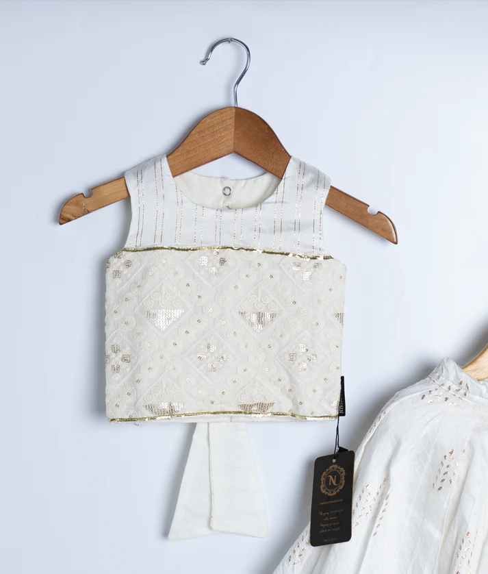 Offwhite Work Material Crop Top With Chanderi Full Length Skirt For Baby Girl [Ready To Ship: 7653]