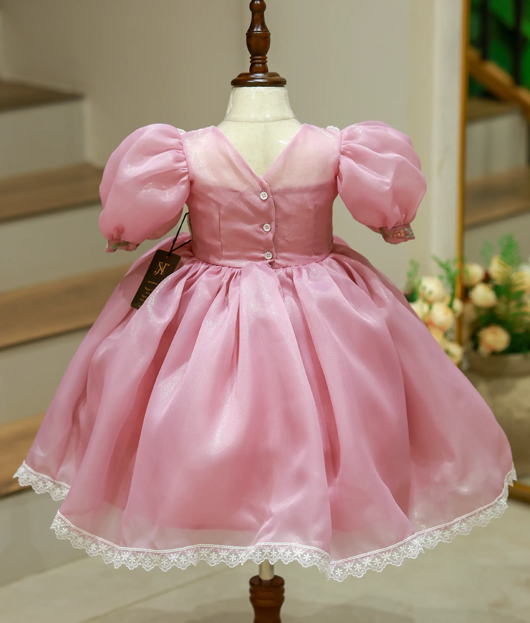 Pastel Lavender Floral Embroidery Birthday Frock For Baby Girl [Ready To Ship: 2700]