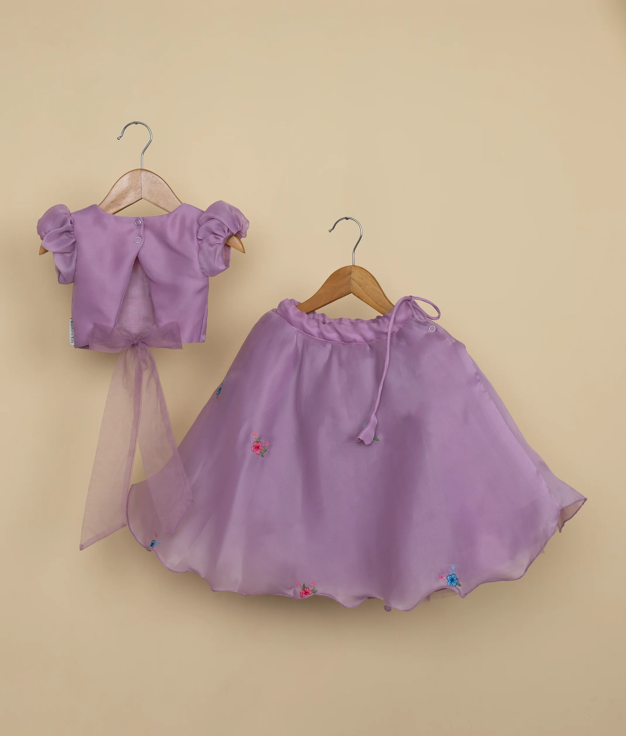 Pastel Lavender Floral Embroidery Crop Top with Full Length Skirt For Baby Girl [Ready To Ship: 5074]