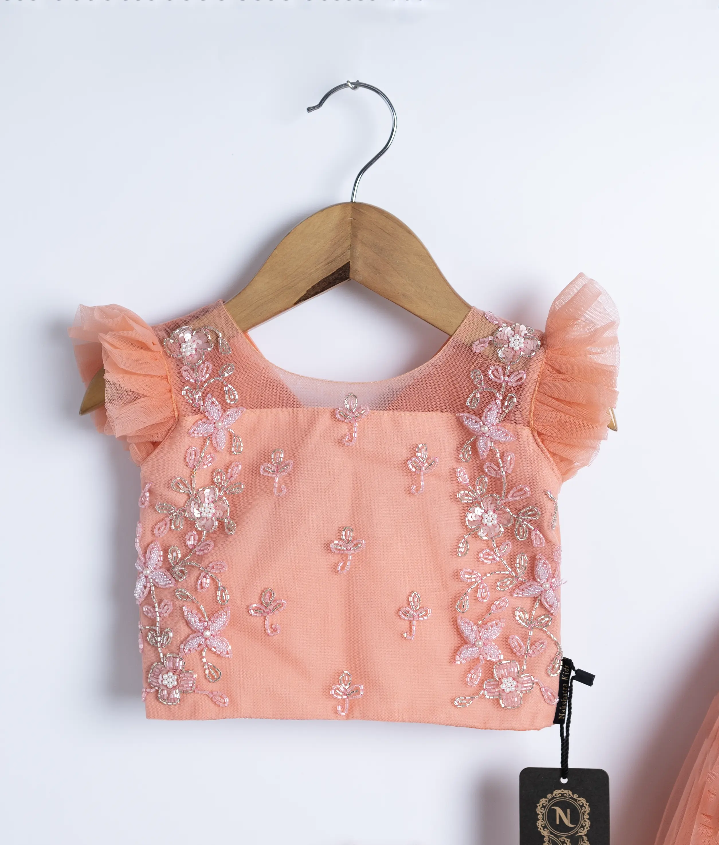 Peach Tulle Net Handworked Top and Skirt For Baby Girl [Ready to ship: 2146]