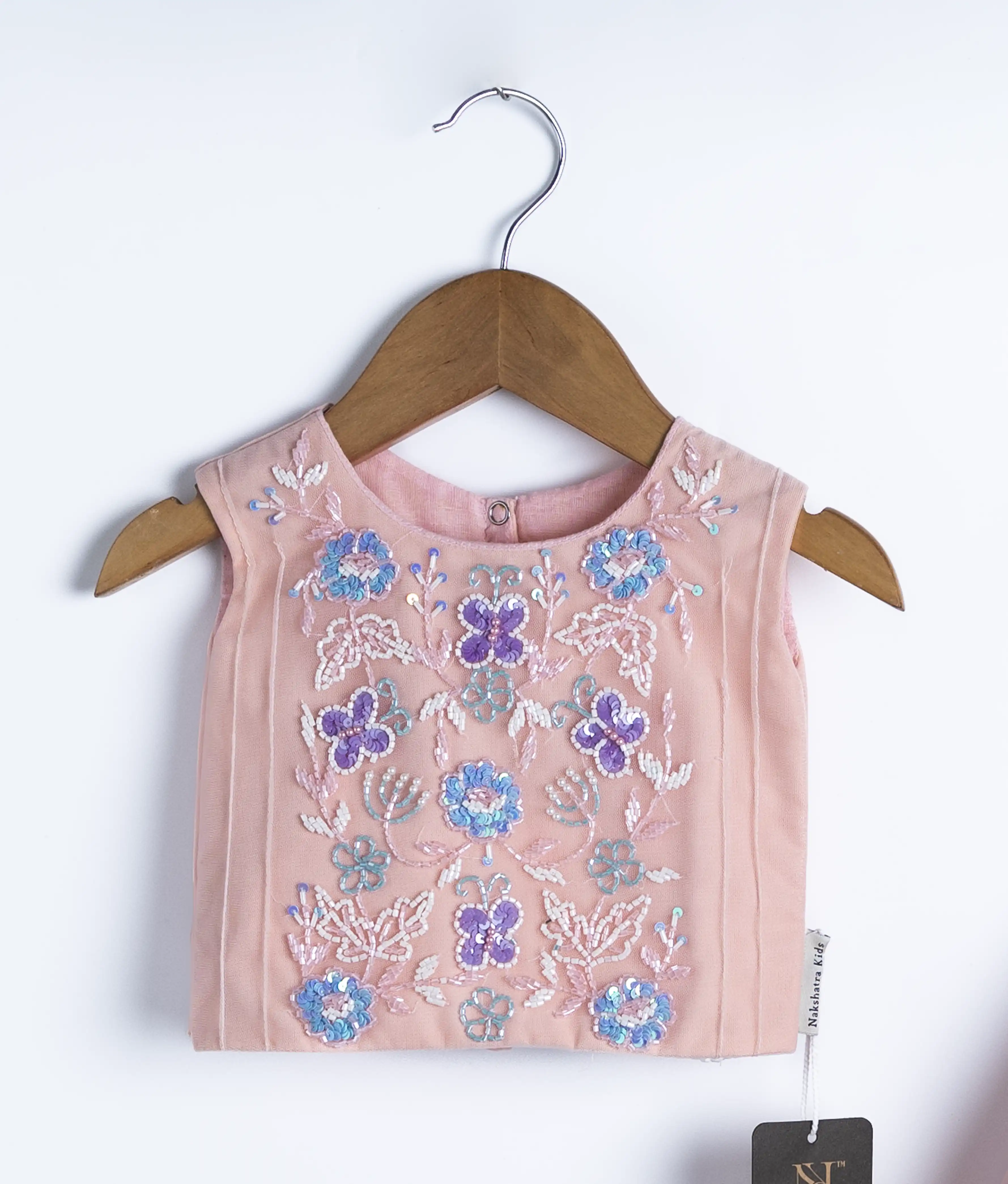 TOP: Handwork embroidery with floral and butterfly designs.