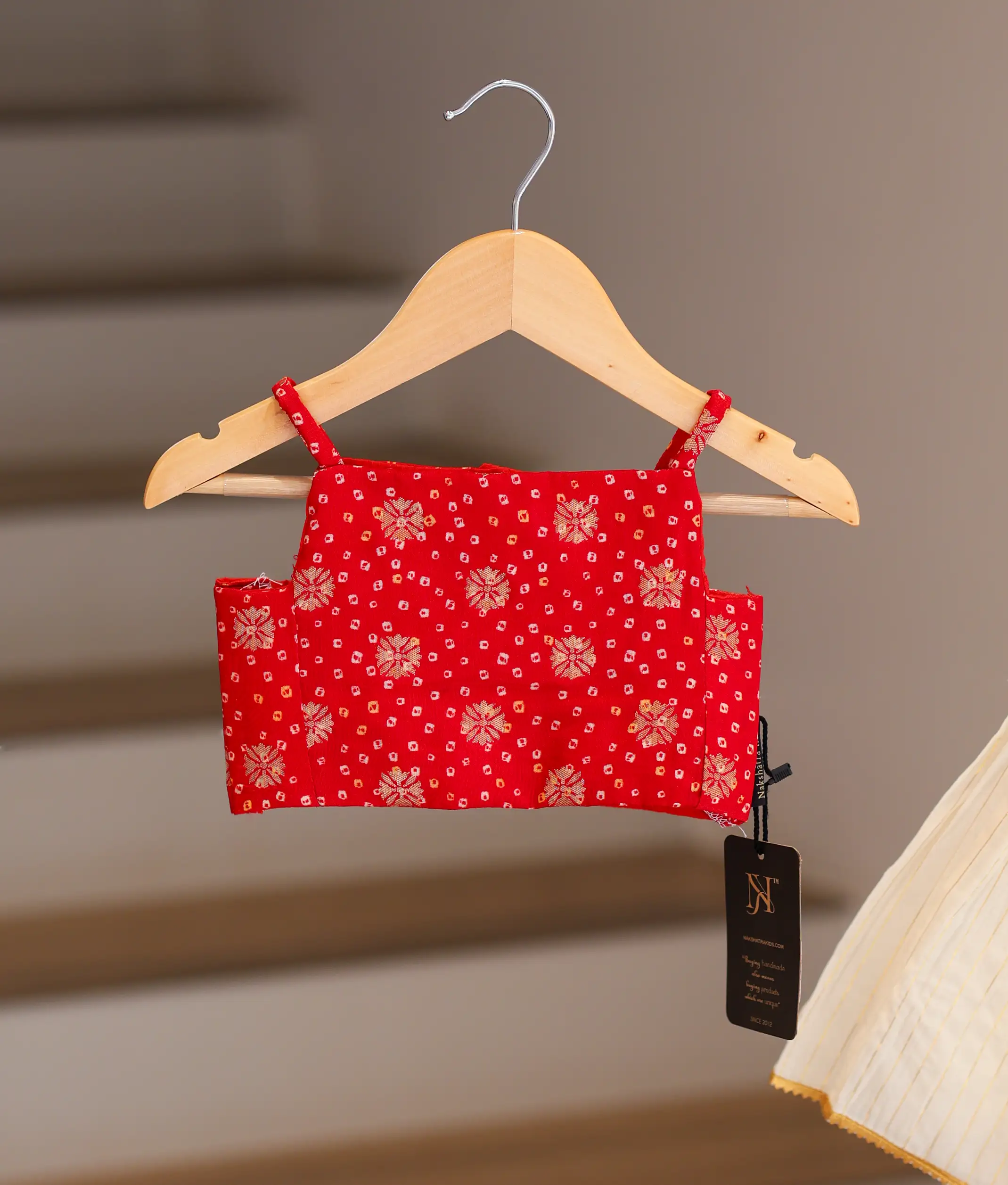 Red Crepe Banarasi Silk Top With Kasav Skirt For Baby Girl [Ready to ship: 5369]