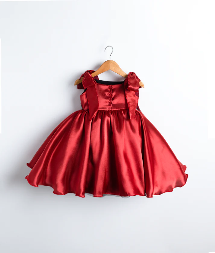 Red Raffaella pearl finished fabric Birthday Frock For Baby Girl [Ready to ship:2911]