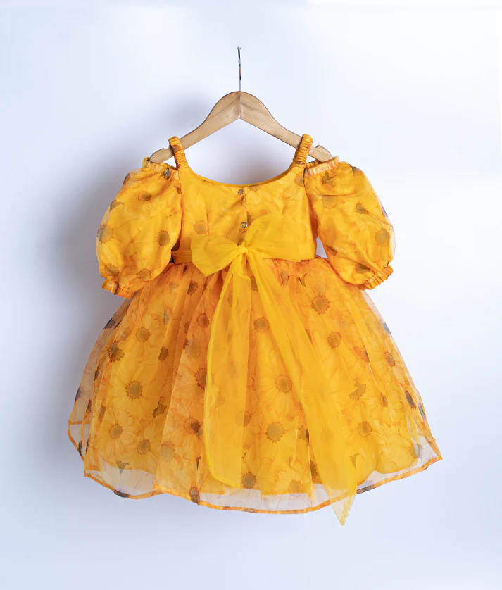 Yellow Printed Organza Casual Frock For Your Baby Girl [Ready to ship: 2073]